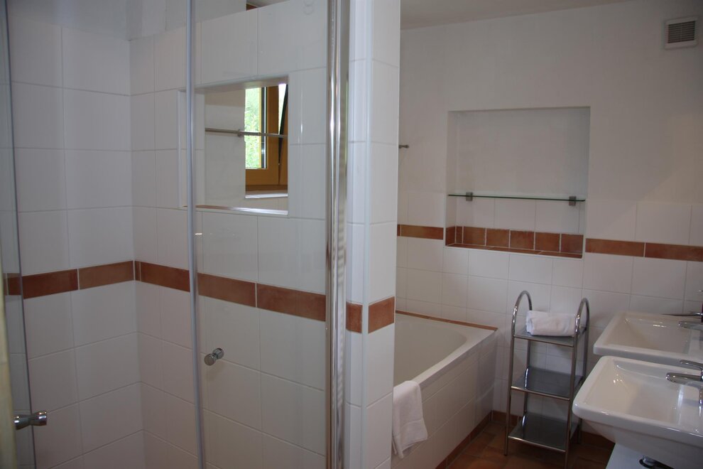 Badewanne, Fließendes Kalt- und Warmwasser, Doppelwaschbecken, Separates WC, Dusche