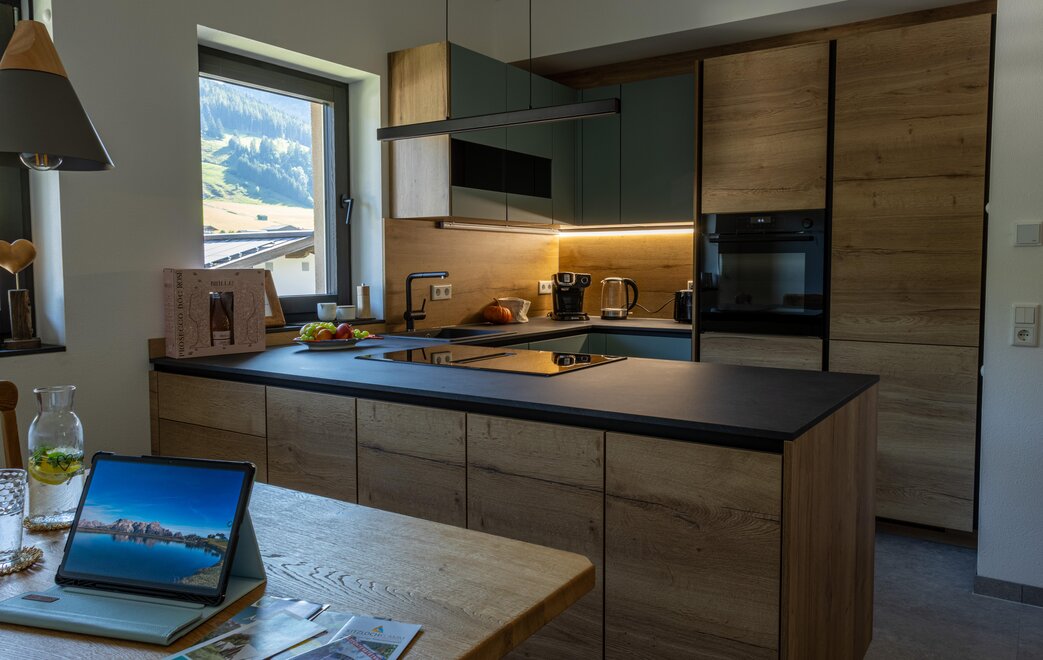 Die voll ausgestattete Küche lässt keine Wünsche offen: moderne Geräte, viel Arbeitsfläche und ein durchdachtes Raumkonzept machen Kochen zum Vergnügen – egal ob Frühstück zu zweit oder gemütlicher Kochabend.