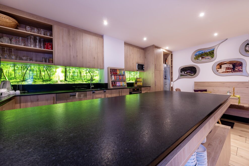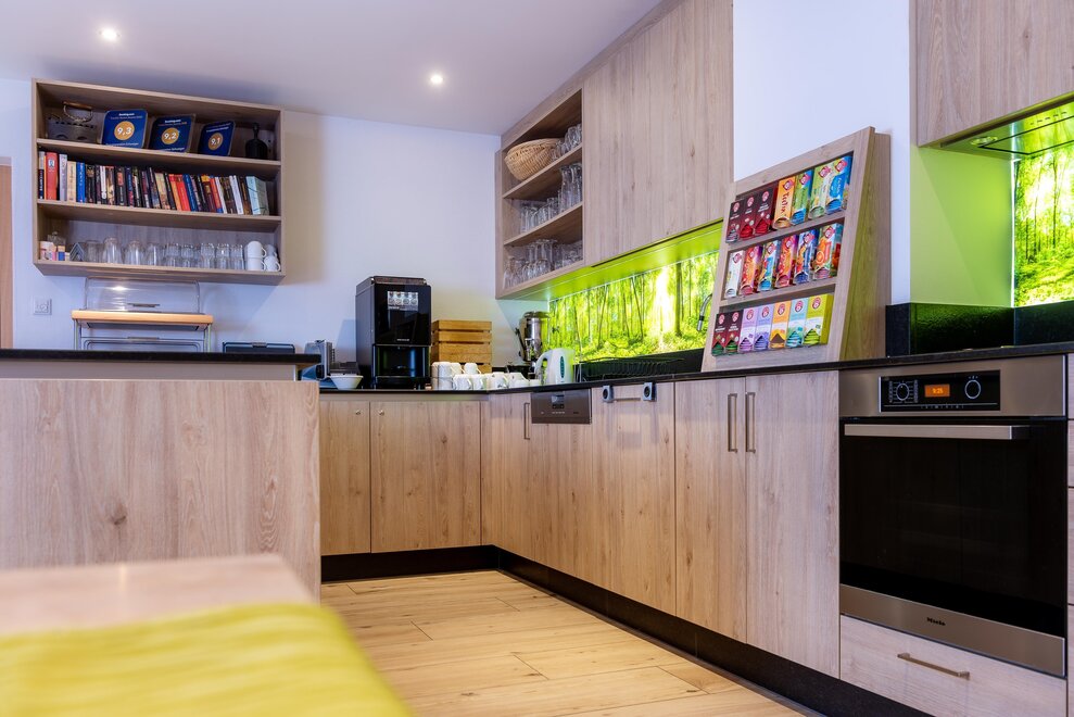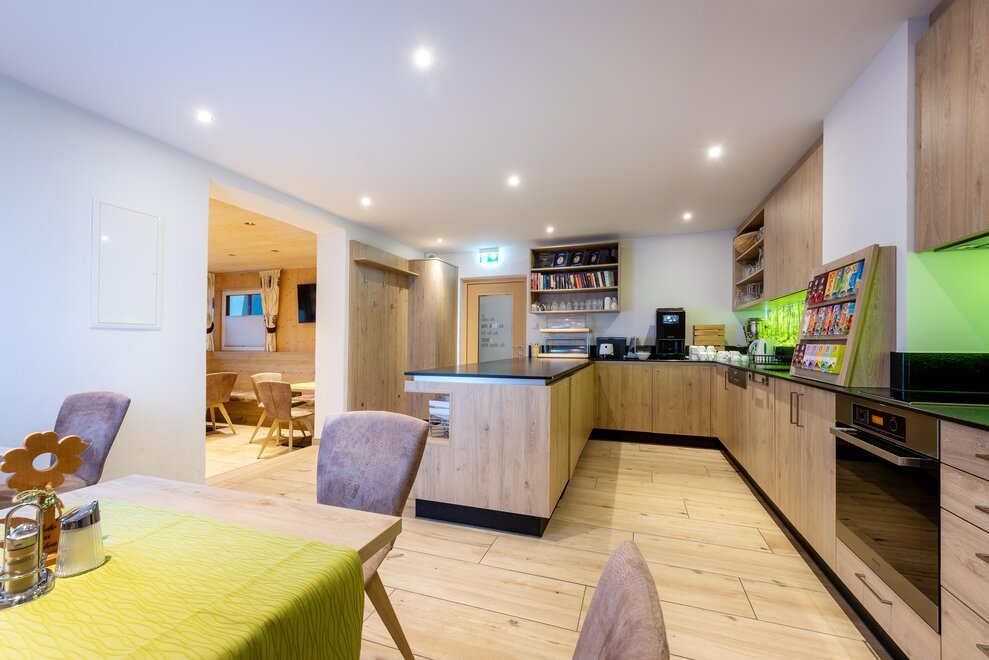 Am Morgen servieren wir Ihnen eine Frühstück mit regionalen Produkten. Der Frühstücksraum dient auch als Aufenthaltsraum und ist mit einer Gästeküche ausgestattet. Gerne können Sie sich am Abend Ihr Essen zubereiten.