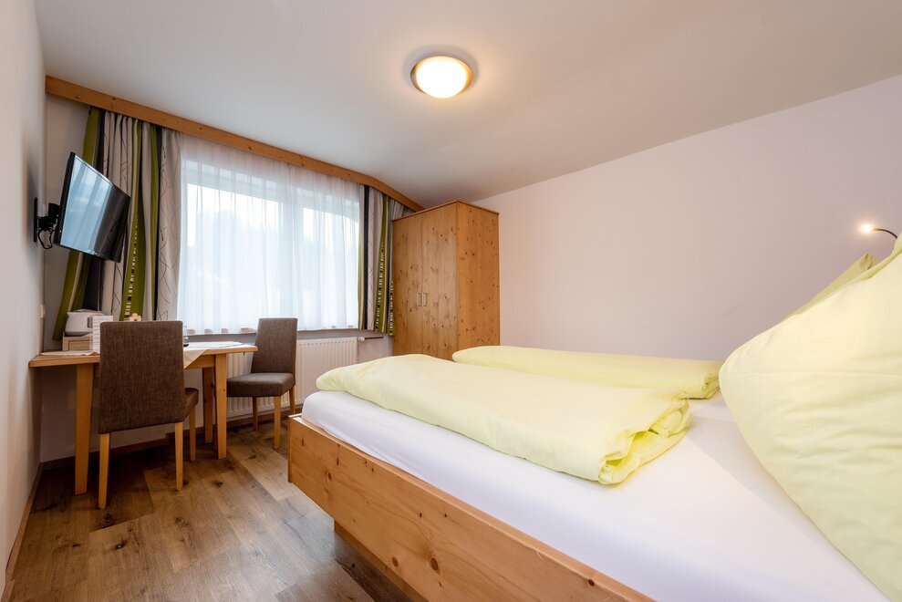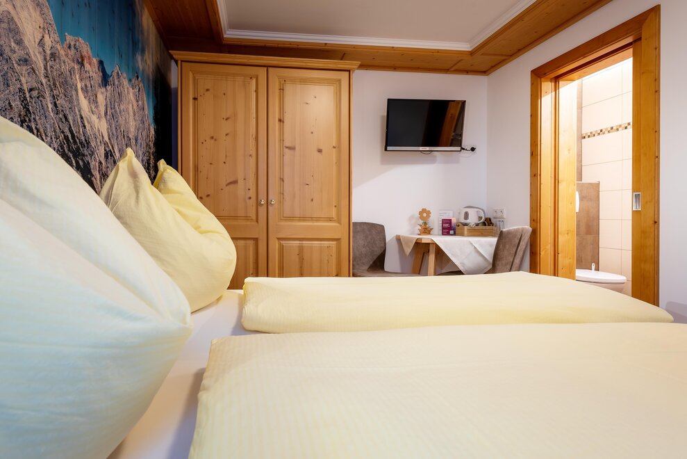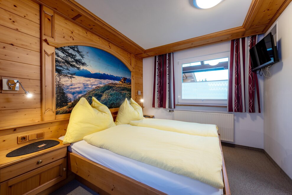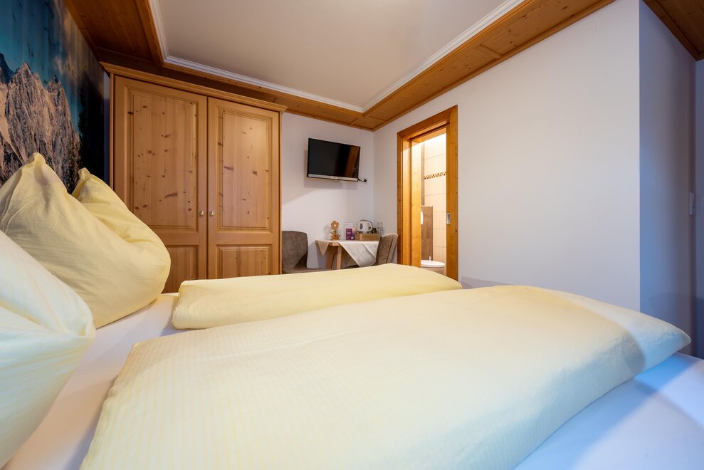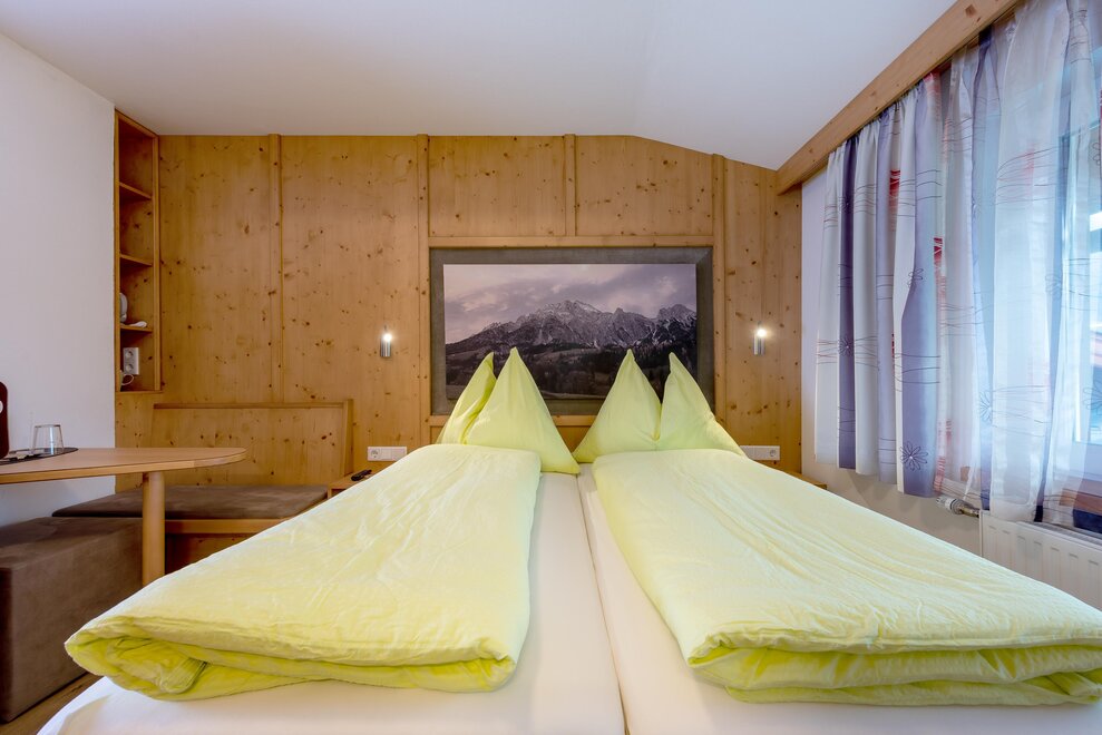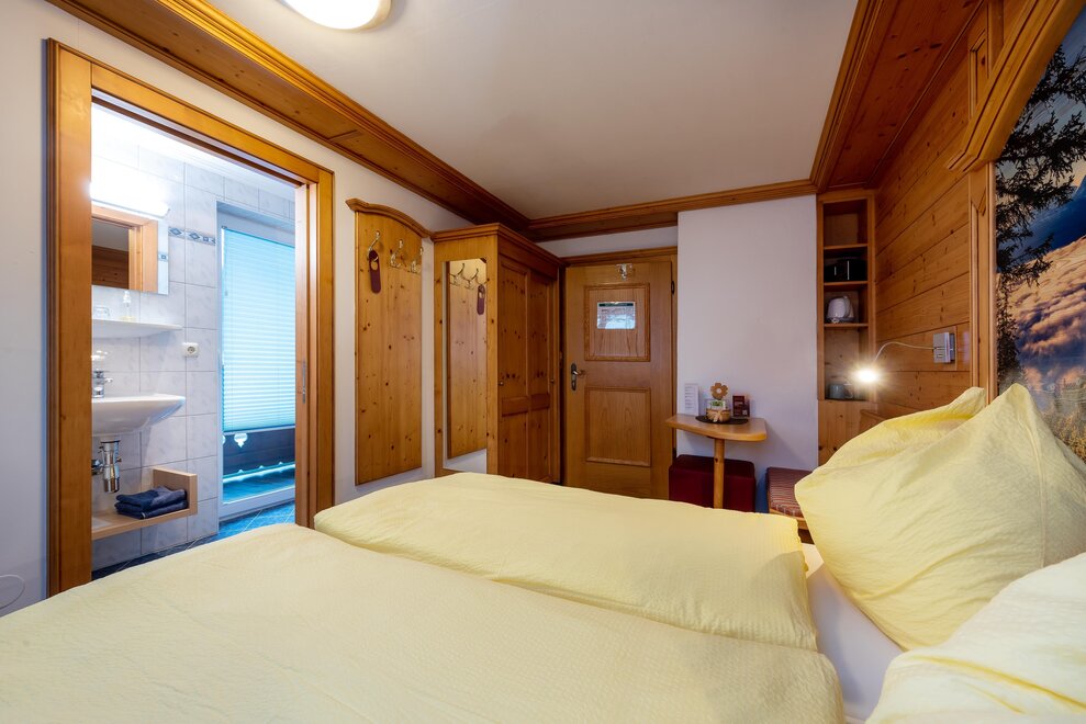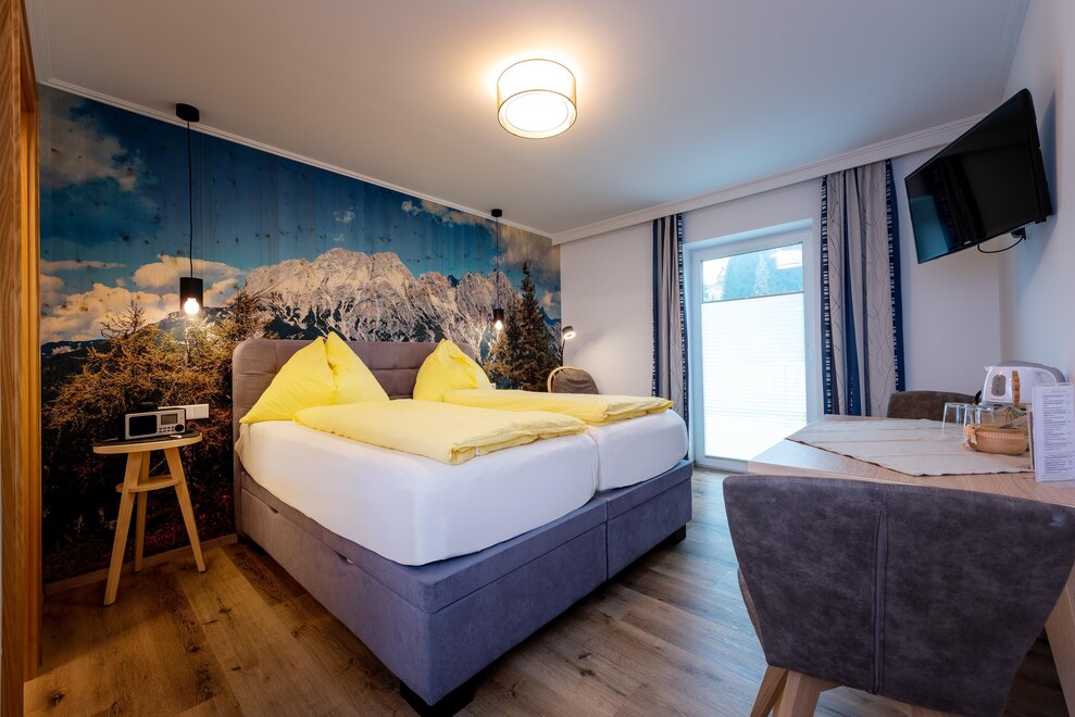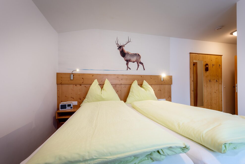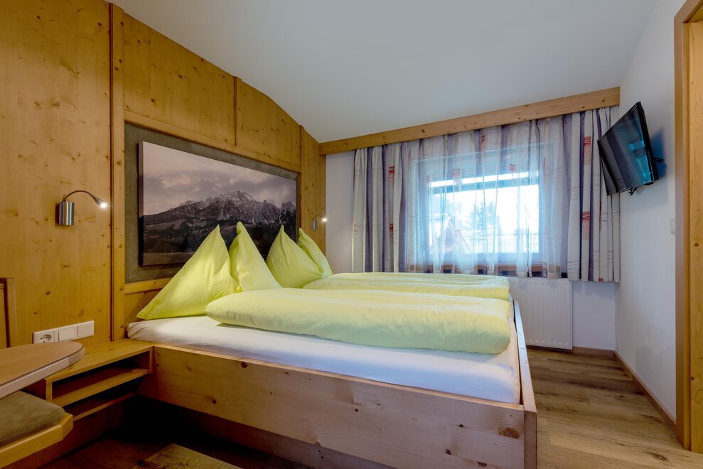 Im Doppelzimmer Birnhorn finden Sie viel Platz zu Zweit und mit einem Zustellbett ist es auch für Familien mit einem kleinen Kind noch kuschelig.