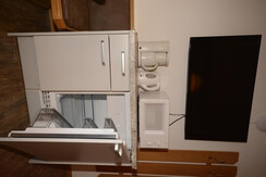 Computer, Haarföhn, Fernseher, Kabelfernsehen, Telefon, Terrasse (teilweise), Mikrowelle, Kühlschrank, Geschirrspülbecken, Radio, Zimmer/Appartement größer als (m²): 1, Kaffee-Maschine, Gefriermöglichkeit, Sitzgruppe, Wickelauflage, Toaster, Wohn-/Schlafräume getrennt, Wasserkocher, Balkon, Bettwäsche vorhanden, Handtücher vorhanden, Geschirr vorhanden, Wohnküche, Radiowecker, Tisch- und Küchenwäsche, Safe, Küchenzeile