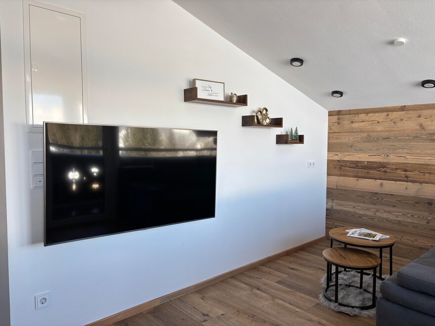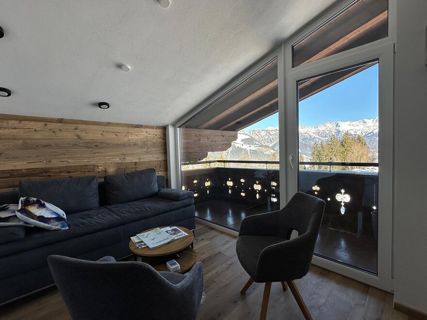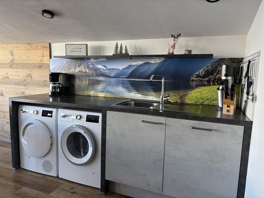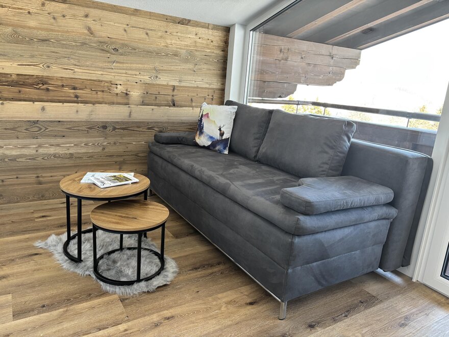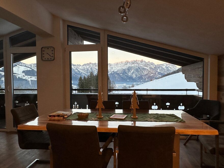 Das Appartment befindet sich im obersten Stock des Bauernhauses. In der Wohnküche befindet sich eine große Glasfront, dadurch hat man eine wunderbare Aussicht auf das gebotene Bergpanorama. Die Küche ist ausgestattet mit Backofen, E-Herd, Brotschneidemaschine, Geschirrspüler, Wasserkocher, Sodastream, Kaffeemaschine, Toaster, Waschmaschine und Trockner. Das Appartement hat 2 Bäder die jeweils mit Waschbecken, Toilette und Duschkabine ausgestattet sind. Es gibt 2 Schlafzimmer mit je 1 Doppelbett(190x200 cm) und ein Schlafsofa in der Wohnküche (150x200cm) - also Platz für 4 bis maximal 6 Personen.