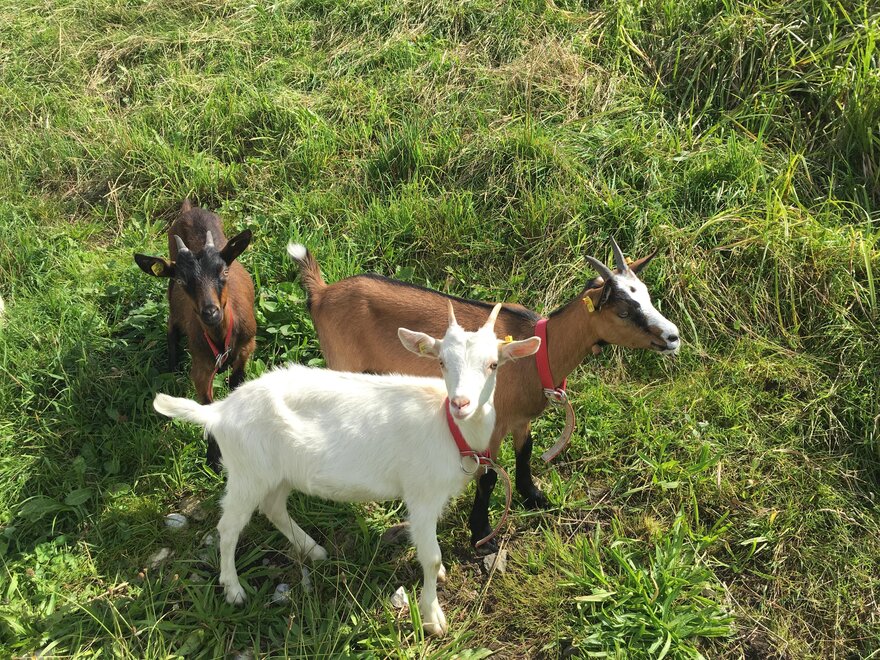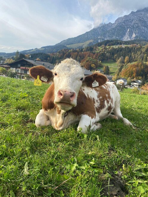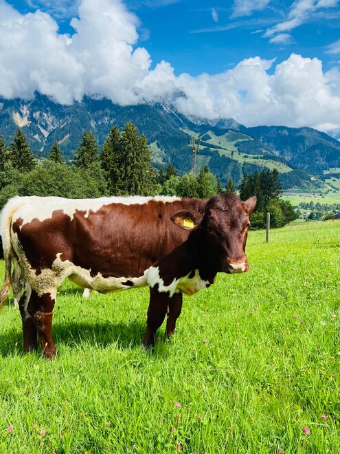 Wir haben Tiere (Milchkühe) am Hof, die im Winter im Stall stehen und im Sommer weiden.