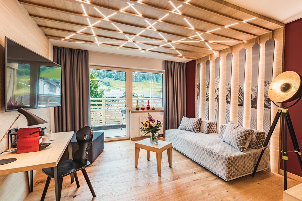 Das Nichtraucherzimmer SPORT befindet sich im "Steinleo" und ist mit Blick zu den Steinbergen oder nach süden zur Asitzgondel buchbar.