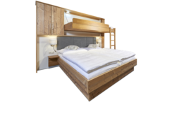 Die Ferienwohnung "Panorama" überzeugt mit ihrer perfekten Größe. Ein Schlafzimmer mit Flexibett, also einem Doppelbett, über dem man ein Einzelbett ausklappen kann sowie ein Hochbett in der großen Wohnküche lassen 5 Personen jeden Morgen ausgeruht in den neuen Urlaubstag starten.