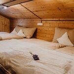 Ausstattung unserer Hütte: 2 Schlafkammern, kleiner Vorraum mit Garderobe, Badezimmer mit Fußbodenheizung (WC, begehbarer Dusche, Waschtisch, fließendes Kalt- und Warmwasser, Holzofen mit Sitzecke (drinnen), ausgestattete Küche mit Elektroherd, Hot Pot vor der Alm, möbilierte Terrasse mit Steingriller, Brunnentrog, Sonnenschirm, Liegen und Schaukel, Kräutergarten, Radio und eine Speisekammer;