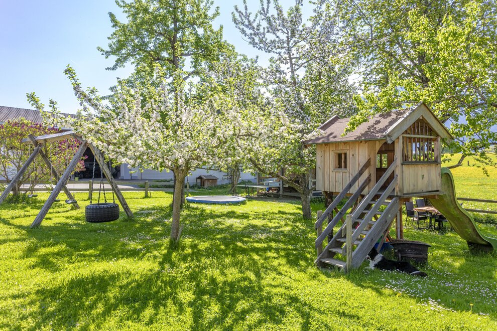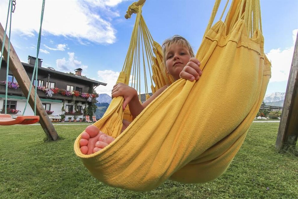 Unsere Familienfreundlichkeit zeigt sich in vielen liebevollen Details: Ob mit Kinderbett, Hochstuhl oder einem Kinderspielplatz, hier sind die kleinen Gäste herzlich willkommen! Während Sie die Natur genießen, können die Kinder nach Herzenslust im Sandkasten buddeln oder auf der Kinderschaukel schwingen. Lassen Sie Ihre Seele baumeln auf unserer Liegewiese oder beim Grillen mit Hofeigene Produkte unter freiem Himmel.