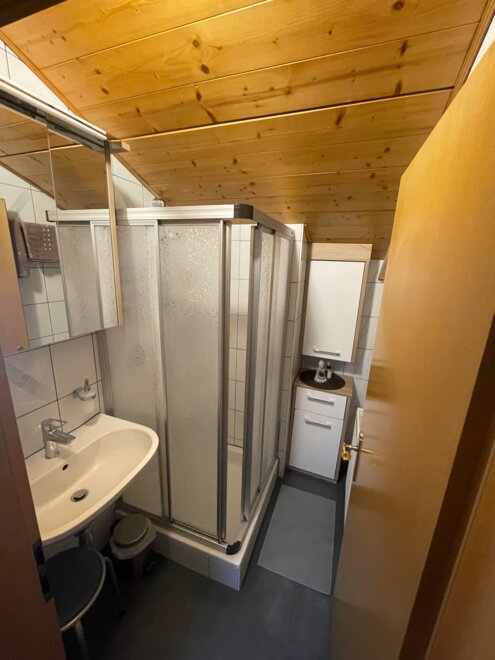 Duschhocker, Dusche, Separates WC, Fließendes Kalt- und Warmwasser