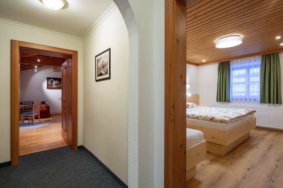 Im Parterre südlich liegendes Appartement mit abgeschlossenem Vorraum, gemütlicher Wohnküche, großem Familienzimmer (Durchgang zum 2. Zimmer mit Stockbett 90/200 und Ankleide), Bad mit Dusche und WC, Sonnenterrasse mit Markise, Kabel-TV, W-Lan, Geschirrspüler