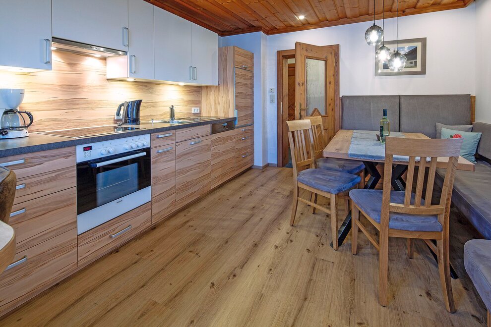 Im Obergeschoss, ostseitig, gemütliches Appartement, großer Balkon mit Freisitz, wunderbare Aussicht zu den umliegenden Steinbergen, abgeschlossene, gemütliche Wohnküche, 2 Dreibettzimmer, 2 Badezimmer, Vorraum, Kabel-TV, W-Lan, Geschirrspüler