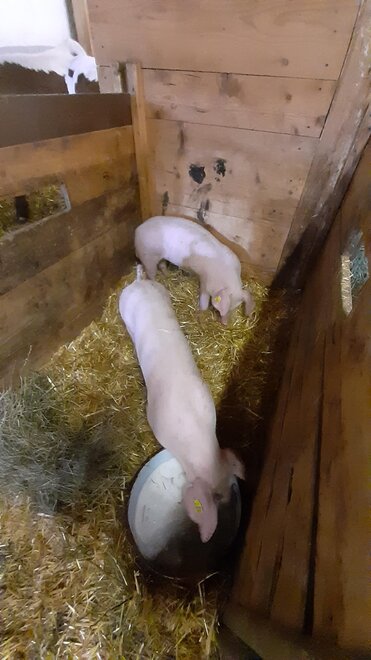Auf unserem familär geführten Biobauernhof haben wir Milchkühe , Kälber , Hühner und einen Hahn , ein paar Schafe , Schweine und 2 Katzen ,