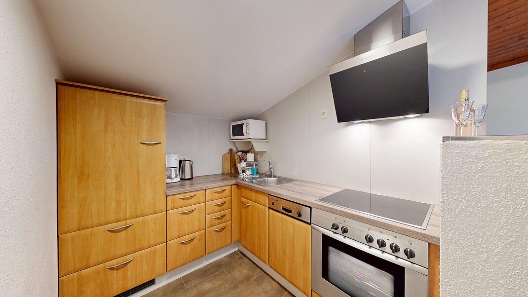 Sie besteht aus Vorraum, einem Doppelzimmer mit ausziehbarer Couch und einem Dreibettzimmer , Dusche/Wc ,einer voll ausgestatteten Wohnküche ( Backrohr, Geschirrspüler, Micro....) mit Sitzecke , Sofa und Balkon .WLAN gratis und Elektrischer Bekleidungs und Schuhtrockenanlage im Keller