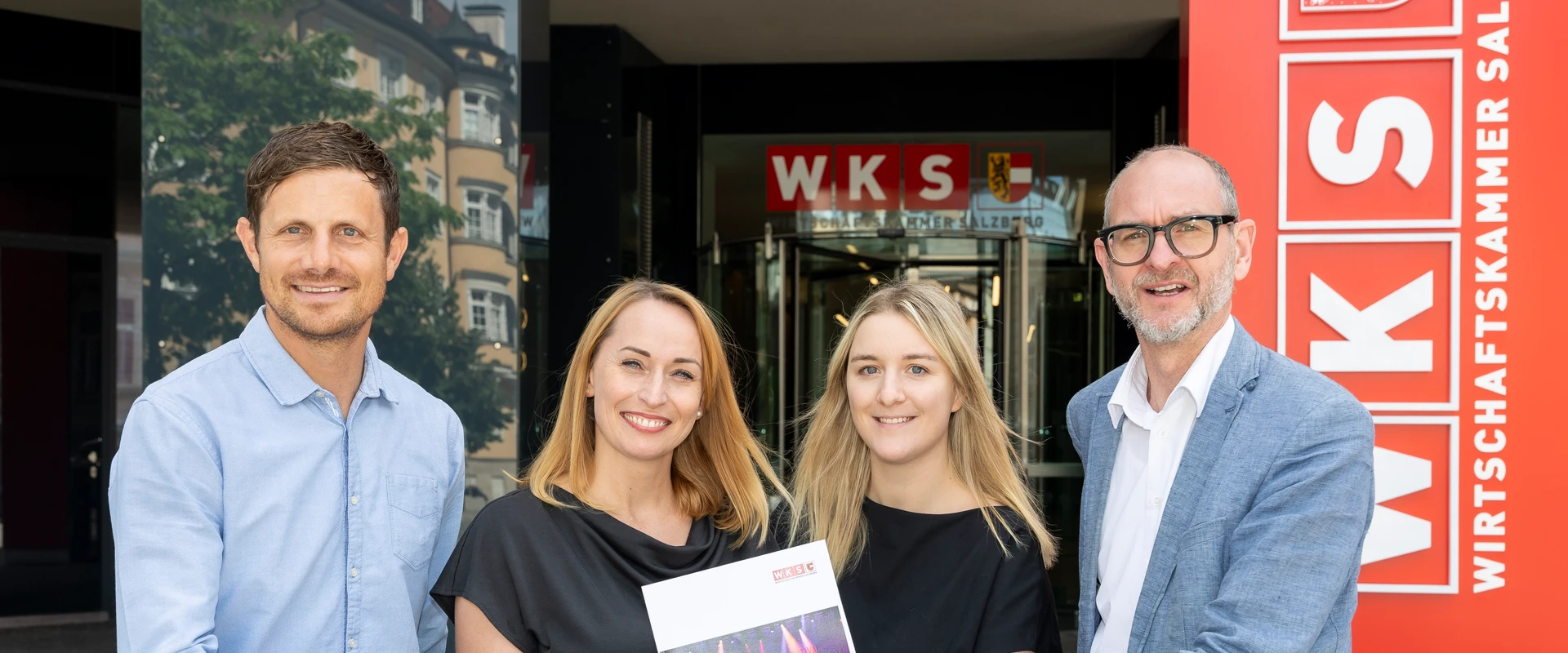 Image (from left to right): Marco Pointner, organiser of the Jazzfestival Saalfelden; Daniela Neumayer, production manager of the Jazzfestival Saalfelden; Vanessa Kahn and Christoph Fuchs from Salzburg Chamber of Commerce (WKS)