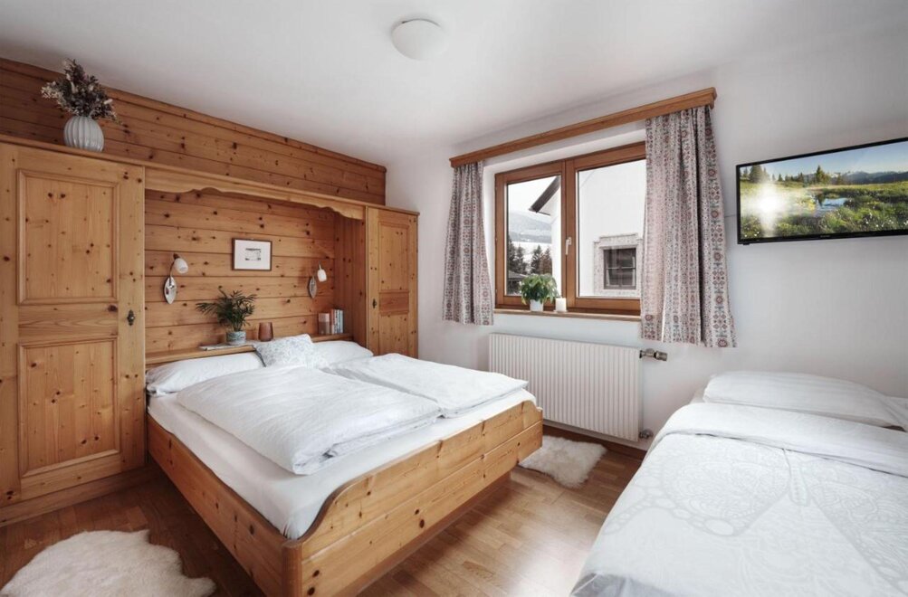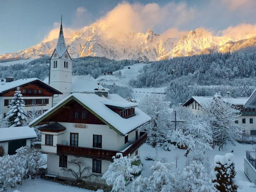 I look forward to visits from many holidaymakers who want to experience and enjoy the wonderful atmosphere of this very special place, Leogang, together with the impressive surroundings. The Leni flat is located on the 1st floor of the Höck family house in the centre of Leogang. Right in the middle, in a quiet location and with a wonderful view of the Leoganger Steinberge. Details of the flat Leni: - Cosy wooden bed for two people with a view of the church tower and the Leoganger Steinberge - 1 child/young person's bed available - Parking spaces for skis or bikes - Shared garden with small seating area - Pets are not allowed - Non-smoking household The Saalbach Hinterglemm Leogang ski area is only 3.6 km away and is easy to reach by ski bus or car. The Schantei children's practice lift is right next to Appartement Leni. The Bikepark Leogang is also only a few minutes away by bike. The supermarket and the public swimming pool are within 3 minutes walking distance from Appartement Leni.
