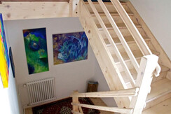 Holiday apartment with studio in the house of an artist! Completely 1st floor, 80m² with kitchen-livingroom, bedroom, bath, WC and studio suitably for 2-4 people or also for single. The house in the midst of a nice garden, lies quietly with the local edge of Saalfelden. Nice look at the everlasting ice of the Kitzsteinhorn and the surrounding mountain world of the Steinernen Meer. Saalfelden and surroundings offer many leisure possibilities, sports possibilities and recreational possibilities. The entrance in the cross-country ski track immediately begins behind the garden gate. The ski area Saalbach-Leogang-Fieberbrunn lies in 6km, the entrance to the ski area Hochkönig 5km. Ski tours and mountain hikes with the host are possible!