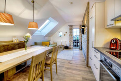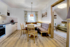 Birnhorn 56 m², entrance area with gaderobe, free W-Lan, fully equiped kitchen with cosy corner seat for your meal and living area, cuddly sleeping room.
