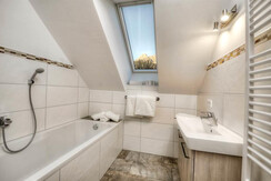 This apartment is specially equipped with two double rooms and a double room with balcony and an additional bunk bed, three bathrooms, two toilets. A fully equipped kitchen with a cozy sitting area and a comfortable sofa bed that has a full bed function, this apartment has been furnished with solid wood and partly with old wood. Simply relax.