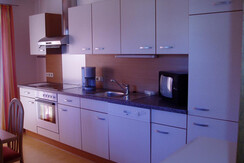 completely secluded apartment, large living/kitchen area with TV, 4 bedrooms, shower, bath, WC, lobby, south and east facing balconies. Breakfast can be arranged on request. This sunny spot is quiet although centrally located. The apartment is situated next to a bus stop (also for ski-bus), a cross-country trail, winter hiking paths and a leisure facility with outdoor pool and a children´s playground.