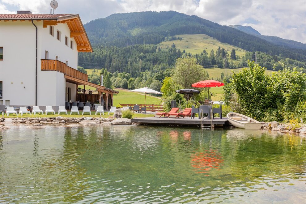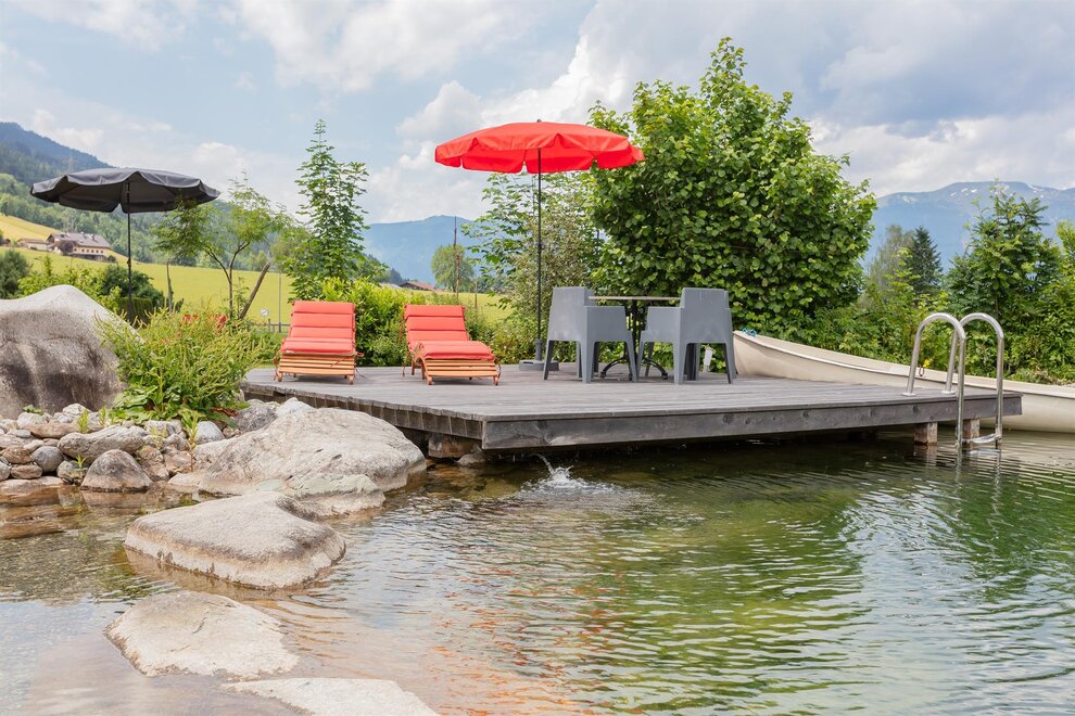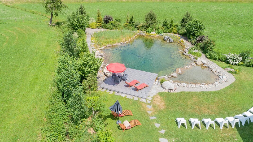 You can relax on the sunbathing lawn at our natural swimming pond. 300m² of swimming fun, and we´ve even thought of little ones wih a non-swimmers´area.
