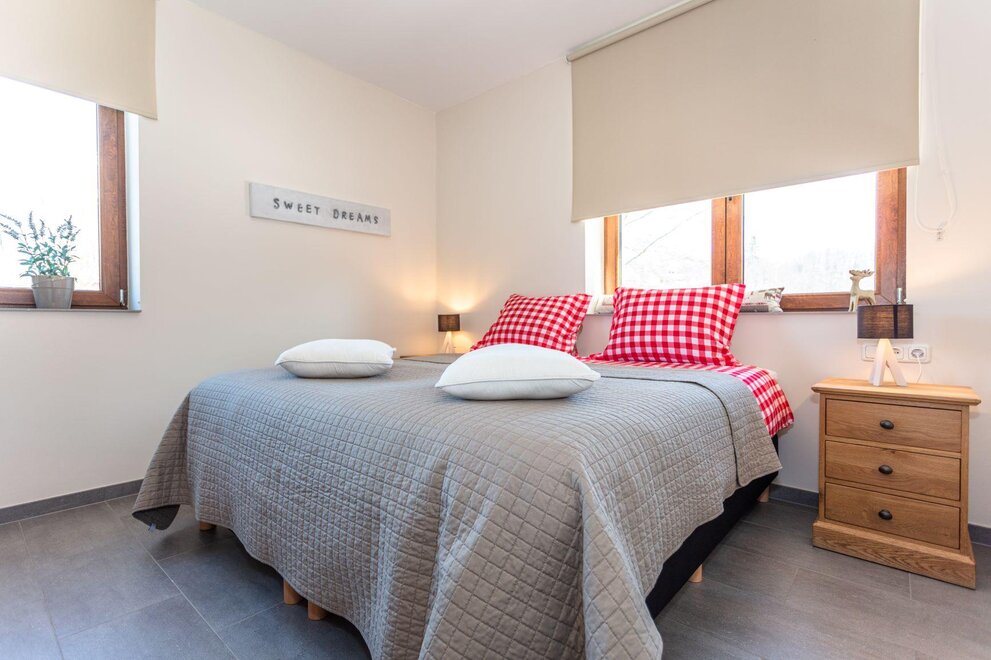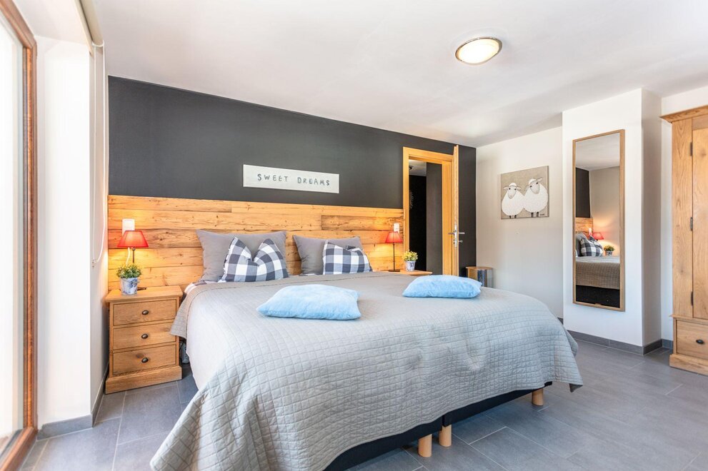 Each holiday apartment has 2 bedrooms, one with a double bed and one with 2 boxsprings and a bunk bed, so there is space for up to 6 people.