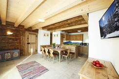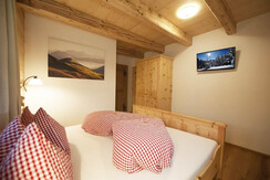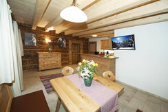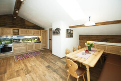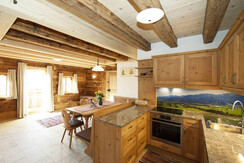 Our apartment have a size of 82 m² and consists of a beautiful and cozy living room made of solid wood furniture combined with lovingly restored rustic furniture. A balcony is available with a beautiful view of the Steinernes Meer and the Hochkönig region. In Apartment Hochkönig 2 doubles and There are 2 bathrooms. The furniture is made of fragrant pine, the beds are brand free and to ensure a restful sleep. The special feature of this room is the lovingly restored wooden paneling from the 17th century. There is also free WLAN in the apartments and a flat screen TV's.This apartment can be combined with the Appartement Kitzsteinhorn through a connecting door (max. 12 person).