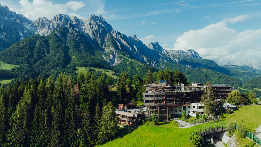 1,050 m above sea level, above the rooftops of Leogang, we discover the first wood-construction hotel in Salzburg, the Forsthofalm. With its unique location in a natural setting right on the ski slopes, it is an ideal base, summer and winter, for all your sporting activities.