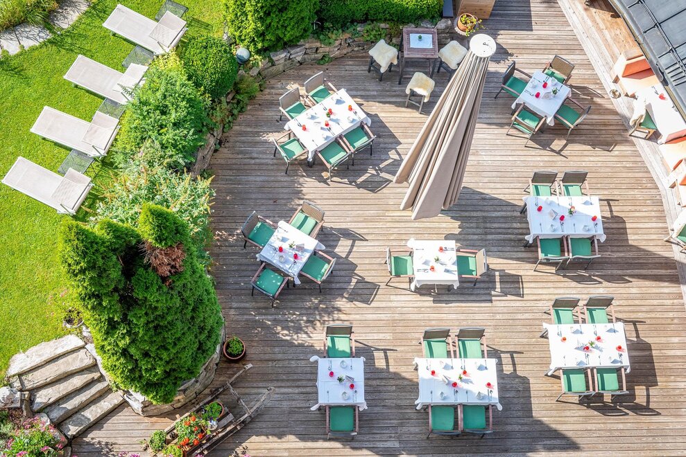 Guests enjoy a gourmet breakfast with front cooking daily, as well as a 5-course menu (also vegetarian) and vegan options upon request (30,- € surcharge for breakfast bookings). In the afternoon, homemade cakes from the in-house patisserie are tempting (in winter, plus a soup pot).