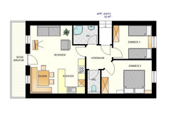 Size 55 m² Occupancy 2 - 4 adults , 0 - 4 children Rooms 3 Bedrooms 2 Room details