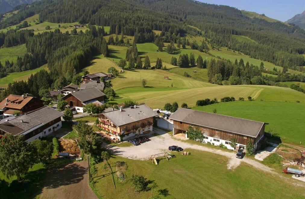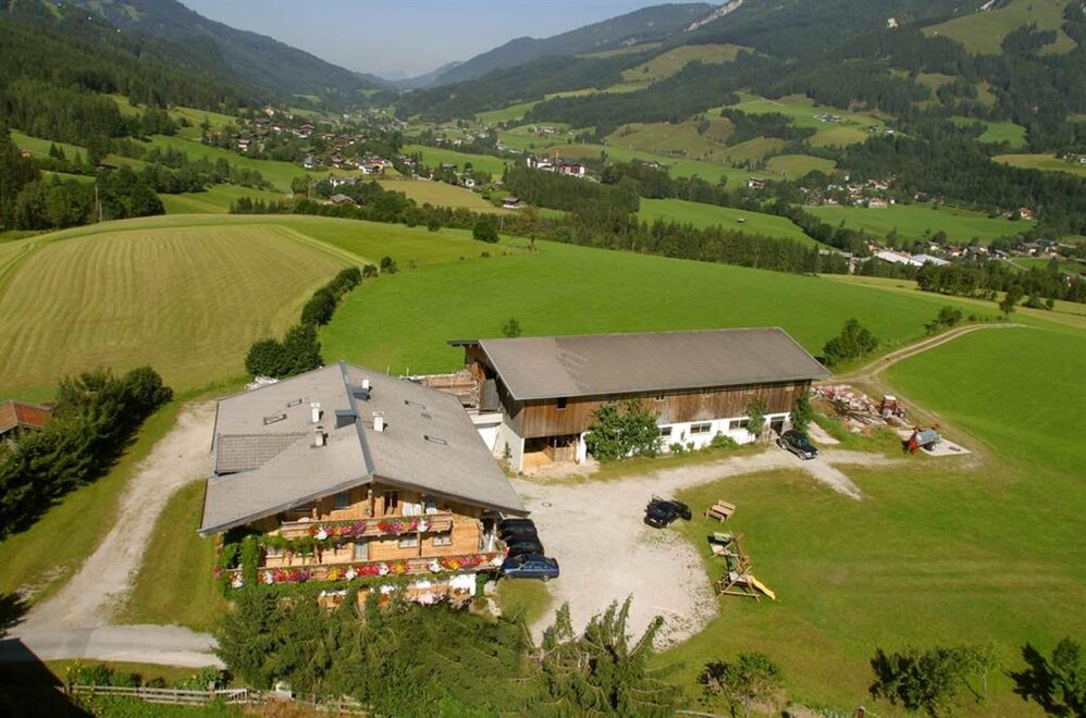 A quietly located farmhouse, 900m above sea level with a 360° panorama view of the Hochkönig and Wilden Kaiser mountains. You can ski back to us from the Asitz mountain. We have a bathing lawn with childrens playground and a barbeque. The apartments have satellite-TV and a dishwasher.