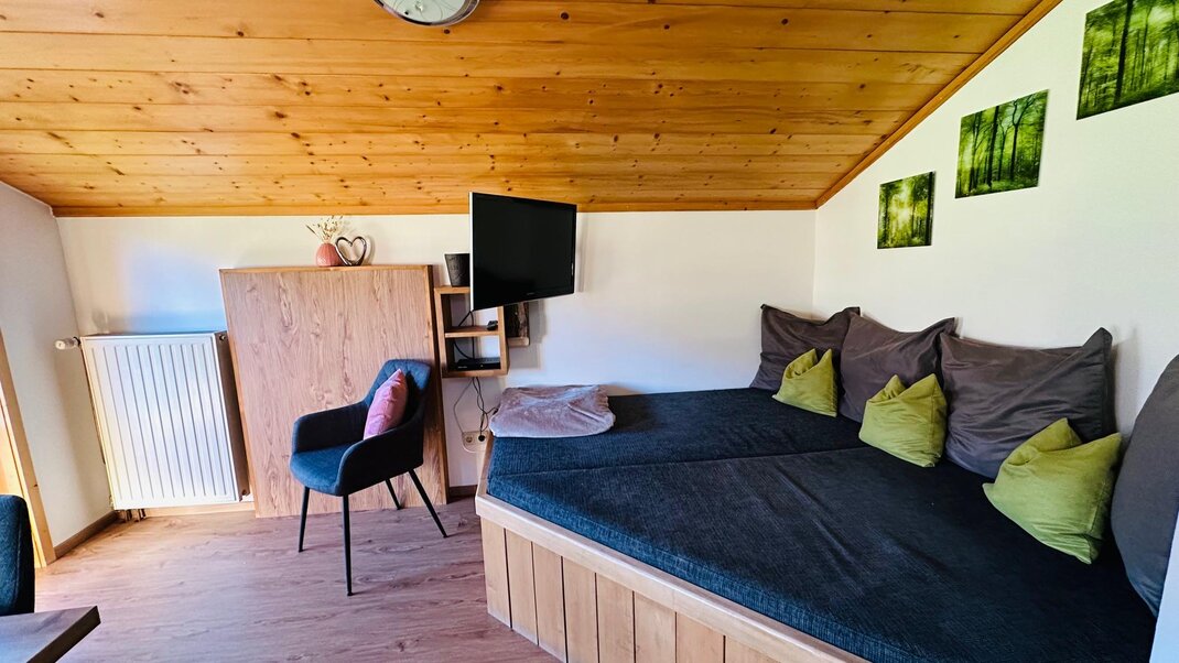 Our lovingly designed vacation apartment offers everything you need for a relaxing and unforgettable vacation on the farm, where you can relax in a cozy atmosphere and enjoy the freedom of country life - perfect for families and couples! The apartment is located on the 2nd floor of our farmhouse and is equipped with a separate entrance and a balcony.