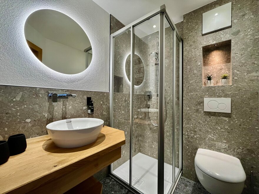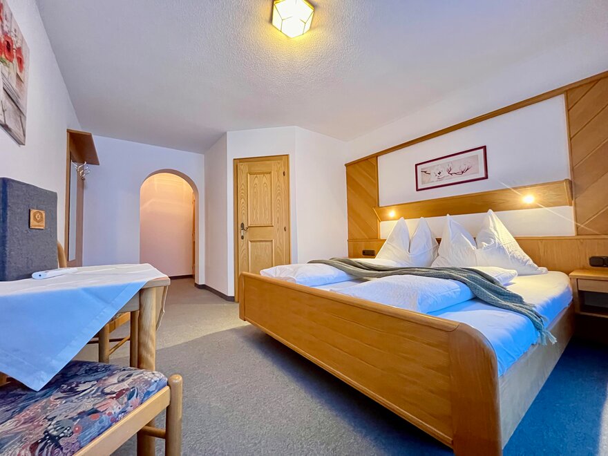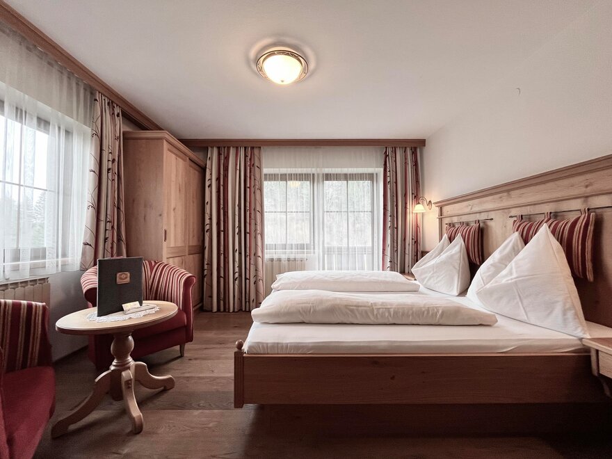 Our double rooms are furnished with alpine charm by the natural material wood. All rooms have a shower, toilet, flat TV and free Wi-Fi throughout the house.