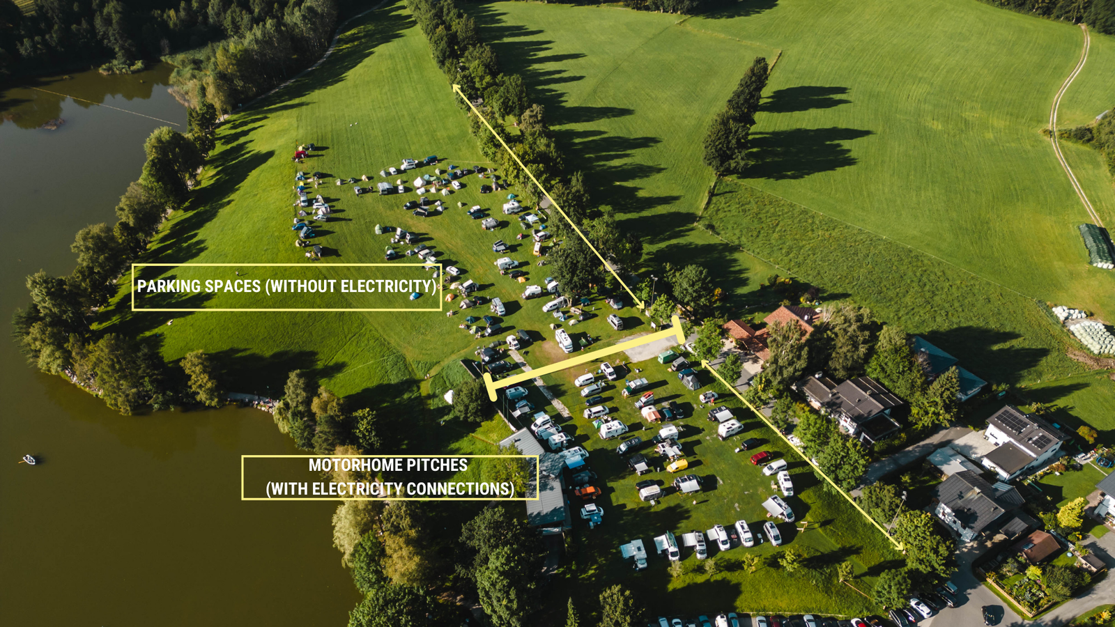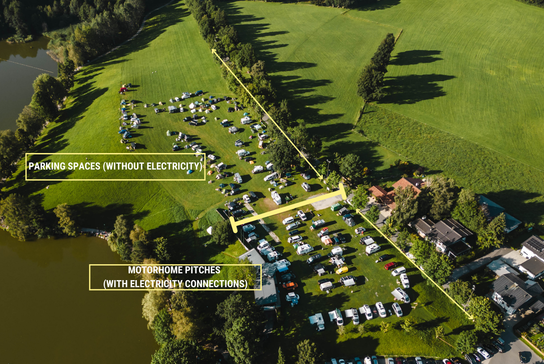 In addition to approximately 100 parking spaces (without electricity), there is also a limited number of motorhome pitches (with electricity connections).